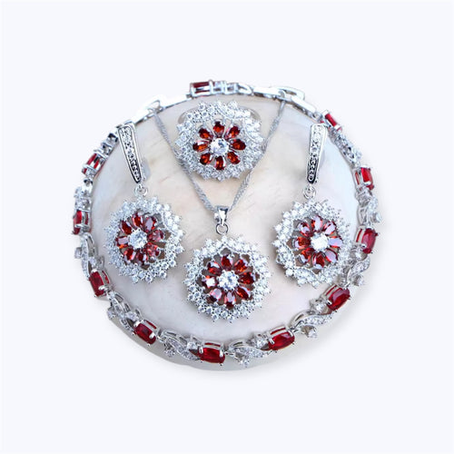 Each piece the necklace, earrings, bracelet, pendant, and ring is carefully crafted to complement one another, creating a perfectly coordinated look of sophistication and grace.
